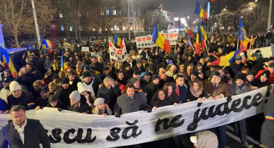 Galerie foto: Bărbatul care i-a înfuriat pe suveraniști cu mesajul ”Marș la Moscova!”, la protestul din București, a fost amendat