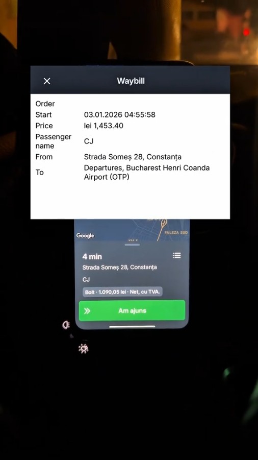 Galerie foto: Cât a plătit un pasager pentru o cursă din Constanța la Aeroportul Henri Coandă. Șoferul a făcut public calculul final