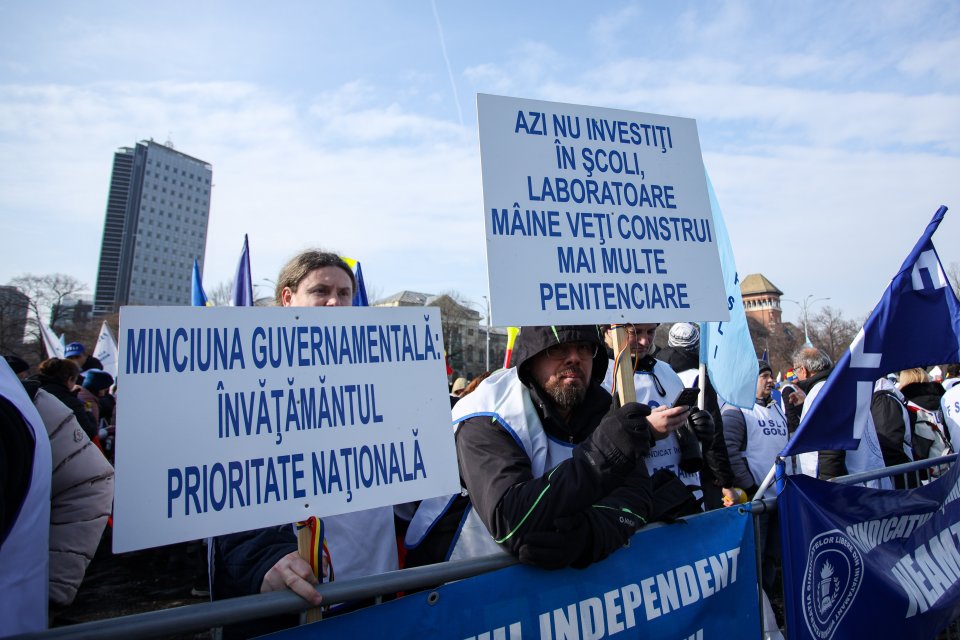 Galerie foto: Profesorii protestează în Piața Victoriei. Nemulțumiri față de măsurile bugetare ale Guvernului